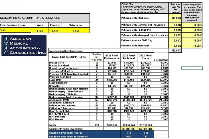 Freestanding Reimbursement Projection Spreadsheet - Customized